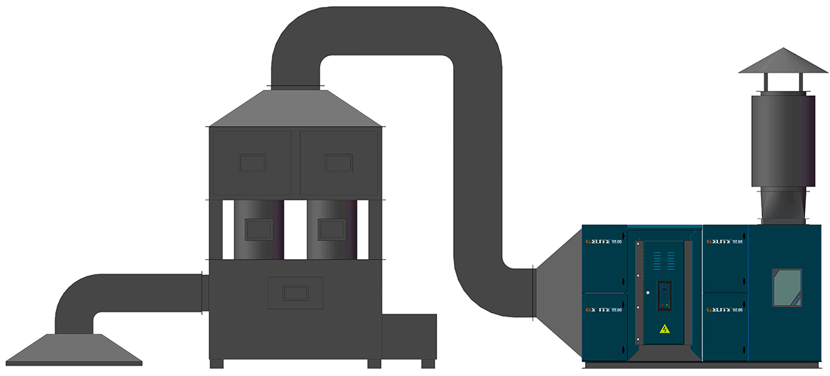 金屬熱處理是機械制造中的重要工藝之一,在熱處理過程中,高溫工件自身表層物質氧化氣化,淬火油遇熱氣化蒸發,蒸發到空中后遇冷又快速冷凝,形成顆粒和油霧小液滴。熱處理產生的油煙中含有炭黑、煙塵、苯并芘等復雜成分,未經處理,將嚴重危害工人身體健康,另外,油煙冷凝物長期附著在設備上,危害設備,造成拉弧短路等故障。