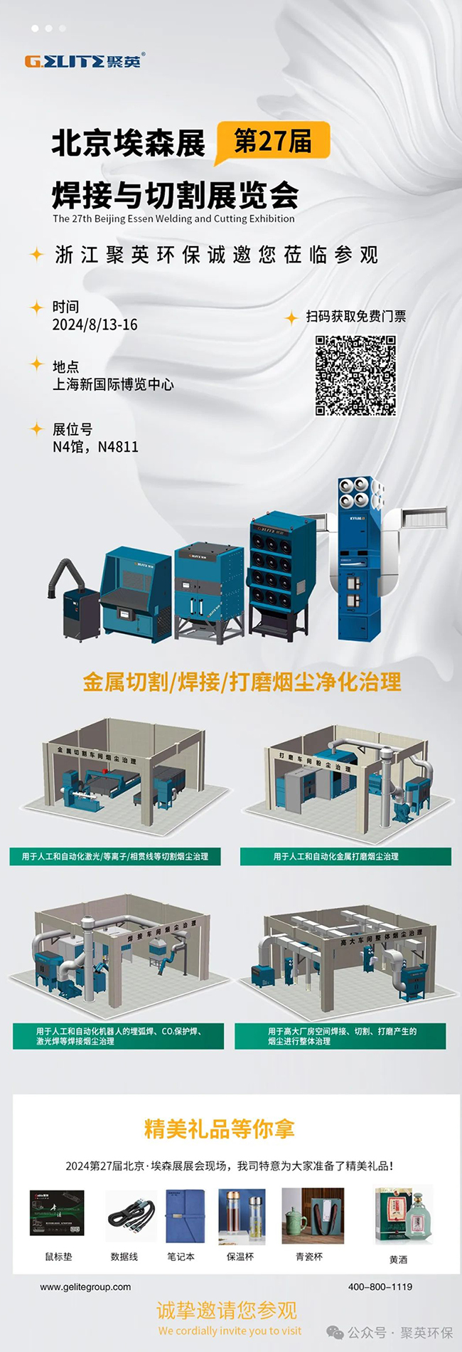 2024年8月13-16日,國際焊接行業(yè)盛會——第27屆北京·埃森焊接與切割展覽會將于上海新國際博覽中心盛大開幕。此次,在浙江聚英N4811展臺上,我們將為您帶來多款智能除塵設備,以及焊接煙塵治理行業(yè)的場景應用展示。