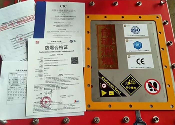 6、泄爆膜片——采用專業泄爆膜片裝置,設備內部產生爆炸時,它能夠在規定的溫度和壓力下爆破,泄放壓力,保護承壓設備的安全和操作人員的生命安全,以及避免使用的環境出現更大的損傷,泄爆膜片的爆破壓力為0.01Mpa,有專門的證書標識卡。