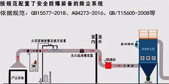 無焰泄放裝置也叫粉塵無焰泄爆裝置或者無焰泄放裝置是由火焰熄滅模板,泄爆片,防 爆接線盒和夾持器組成。可安裝于室內除塵箱體,泄爆片有信號裝置,可以通過接線盒與風機或者其他設備聯動。當發生粉塵爆炸時,爆破片對快速沖擊的爆燃壓力做出反應,并打開,以釋放壓力,膨脹的火球通過時打開的爆破片被熄滅模塊攔截。從而達到阻隔火焰以及通過打開防 爆門的燃燒和未燃燒的粉塵的作用,防止二次爆炸引起的傷害。